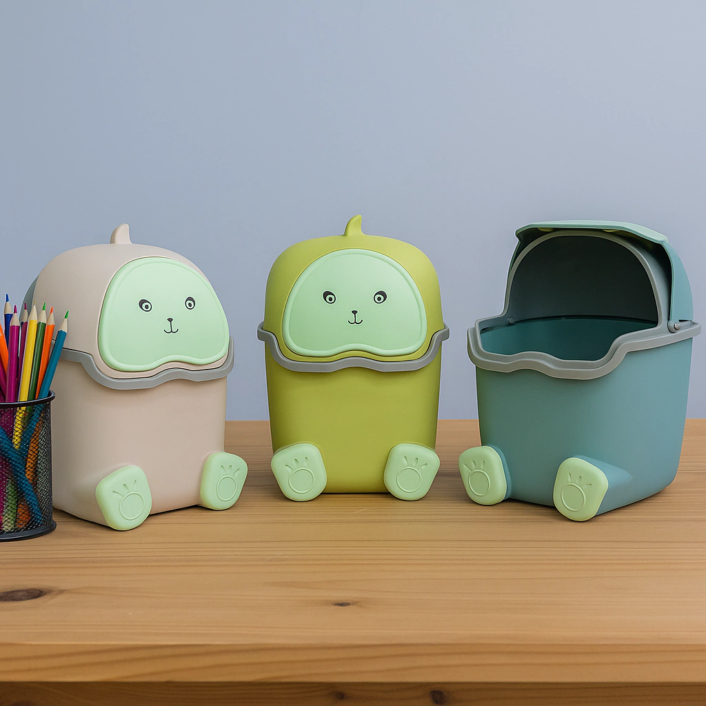 Cesto de plástico con tapa rebatible ideal Oficina , Habitación, Trabajo... ¡Prácticos y adorables!