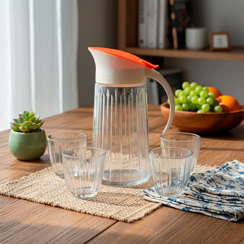 Set Jarra de Vidrio + 4 Vasos en Caja – Elegancia y Funcionalidad para tu Hogar